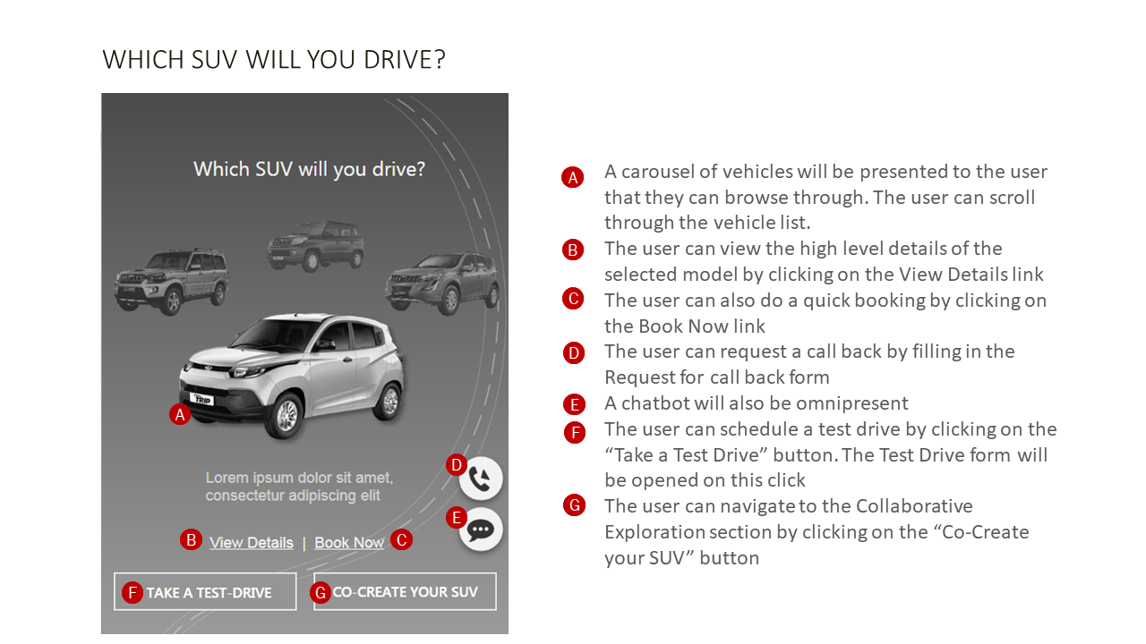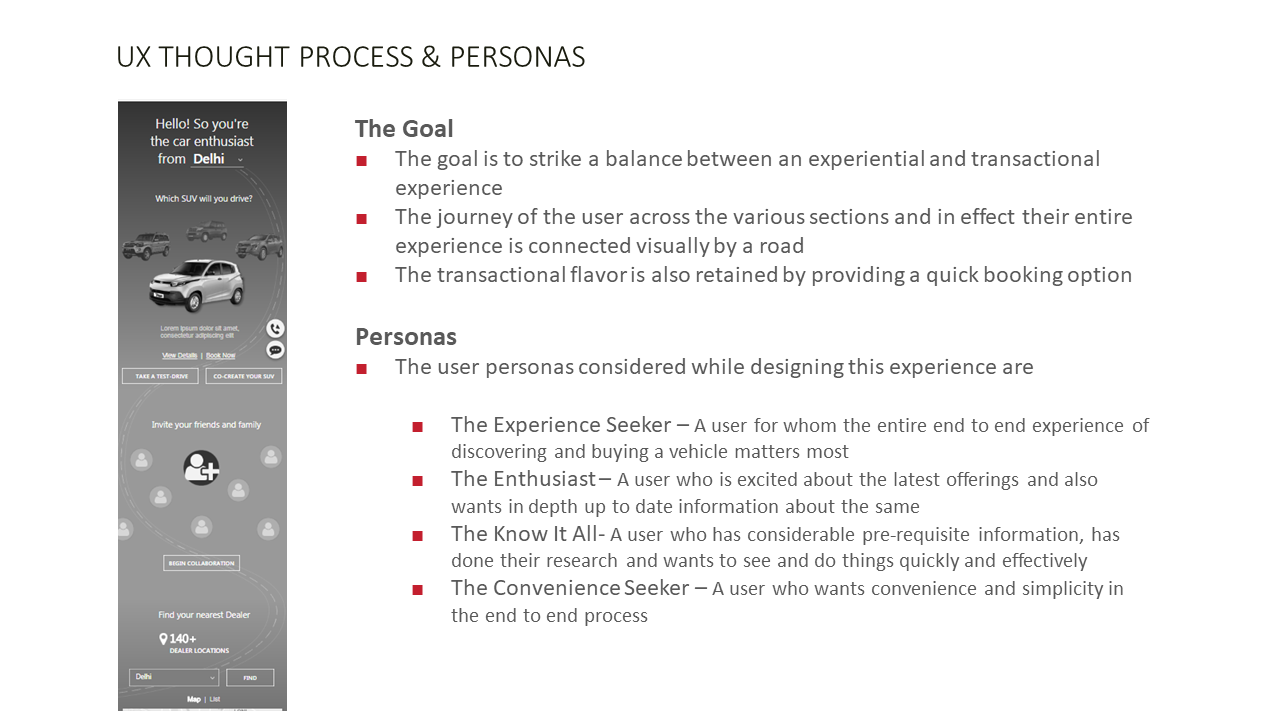 A mobile-first buying experience for Mahindra SUVs, this project looks into booking a car while including various features with ease. Collaborative customisation of the car by sending invites, engages more than one person which floats in flexibility and choices which otherwise lack. All of this, along with a conversational UI, make for a great transactional experience!